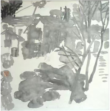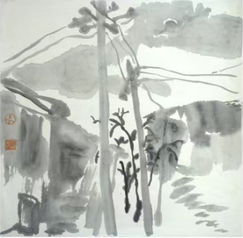 (中国画)“山之南•老树”(高60cmx宽60cm)2015.6